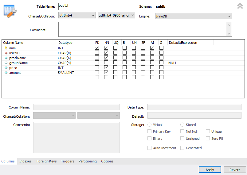 CREATE TABLE buytbl -- 회원 구매 테이블(Buy Table의 약자)