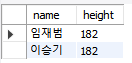 SELECT name, height FROM usertbl WHERE height BETWEEN 180 and 183;